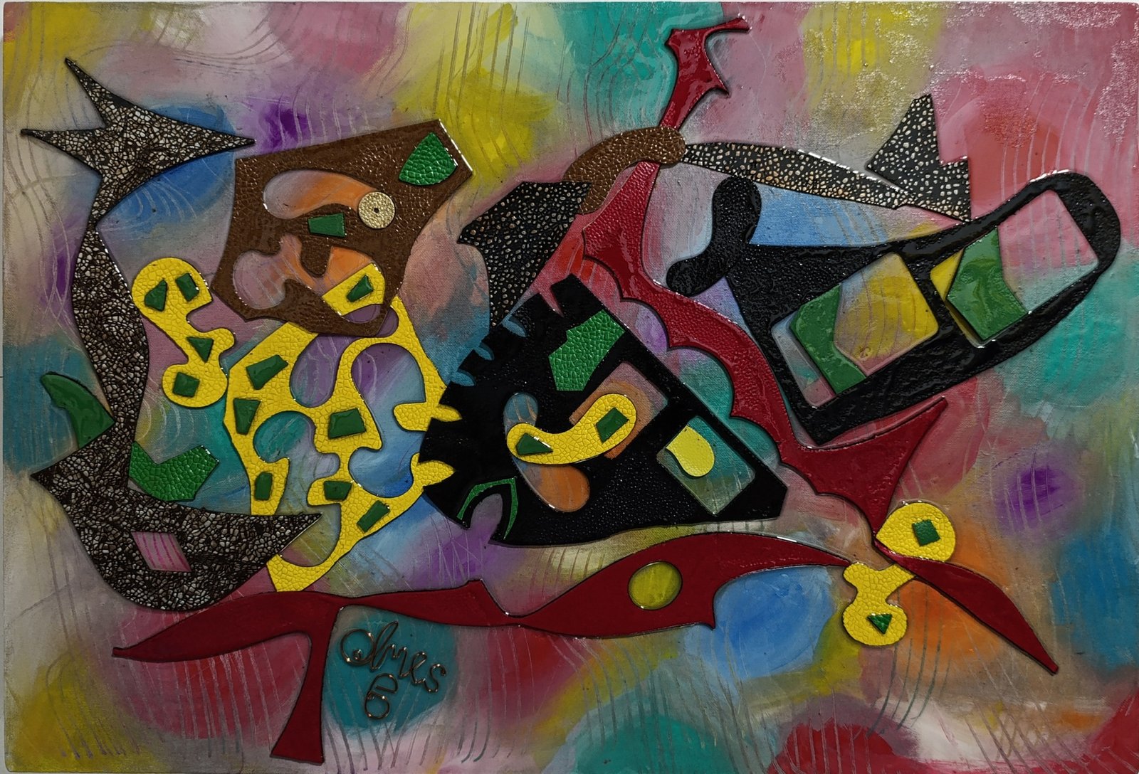 Acrílico y cuero sobre lienzo – Expresionismo abstracto
