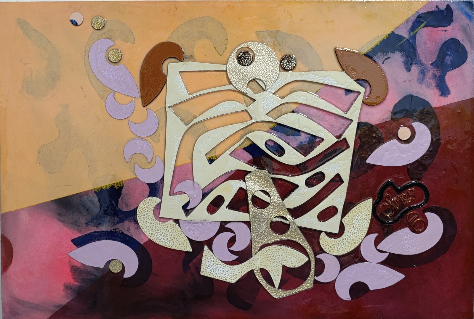 Visualmente, la pieza convoca la sensación de un umbral vibrante, un punto donde las dimensiones se superponen y se tocan sin mezclarse del todo. Las formas y colores parecen dialogar entre sí, como si fueran ecos de mundos gemelos que existen en paralelo, esperando el momento adecuado para revelarse.