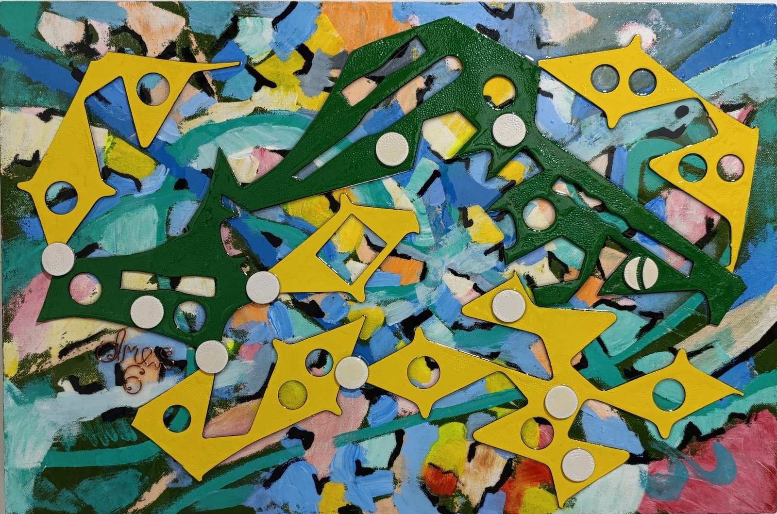 Acrílico y cuero sobre lienzo – Expresionismo abstracto