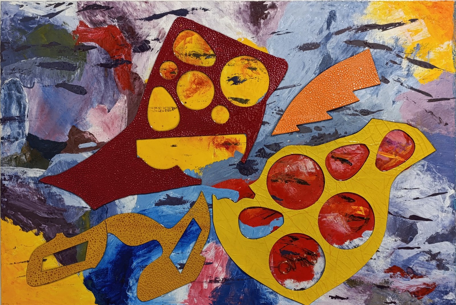 Acrílico y cuero sobre lienzo – Expresionismo abstracto